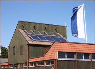 Flachkollektoren mit einer Fläche von 30m² für Beheizung und Warmwasser auf einem Studentenwohnheim